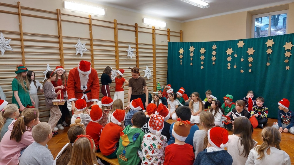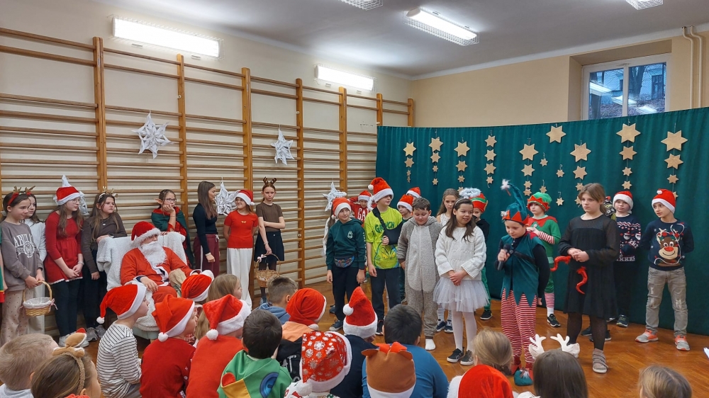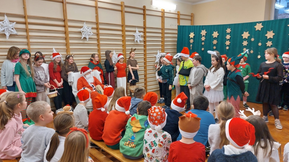 Klasa 3a pod opieką p. Reginy Kopiec zaprosiła szkolną gawiedź na Mikołajkowy występ. Jak legenda głosi w nocy z 5 na 6 grudnia, tradycyjnie pod osłoną nocy, Mikołaj ma odwiedzać domy i zostawiać prezenty. Dzień ten jest często celebrowany przez dzieci, które czekają na upominki, takie jak słodycze i zabawki.